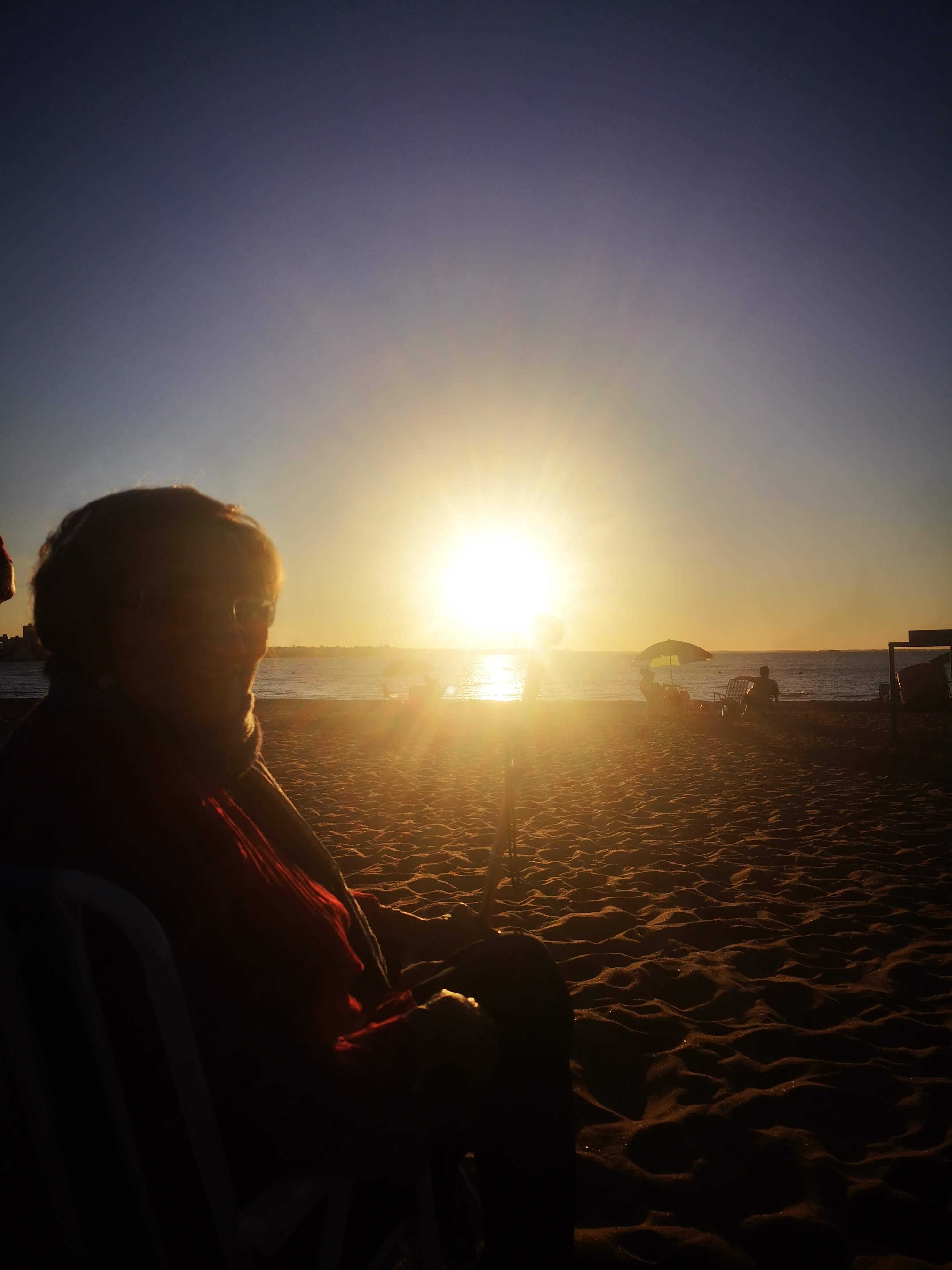 La veo sentada en una silla de playa, que ella misma compró a cuotas, mirando el atardecer.